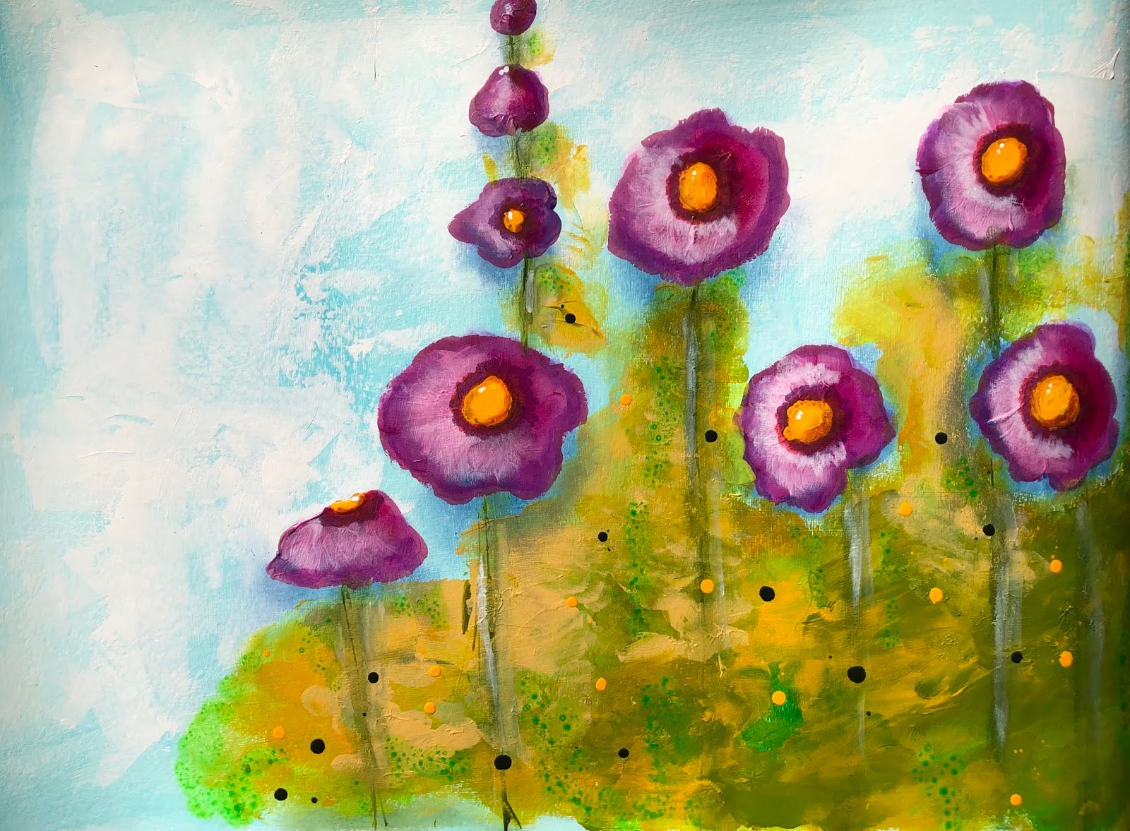 Anyway back to the painting....this was week 20 of the 48 Weeks Journaling Workshop if you want to find out more about this workshop go HERE Donna had said in the video that "inspiration was from Karen Margulis her Hollyhocks" you can check Karen out HERE you will absolutely love her work.